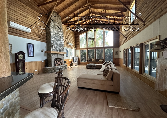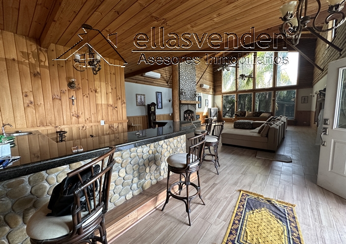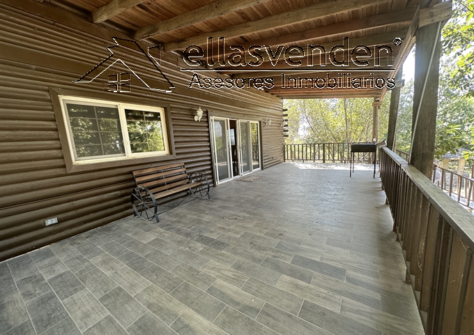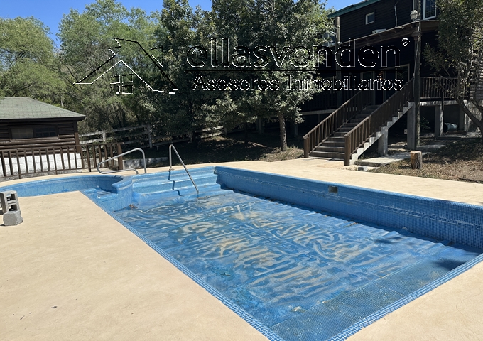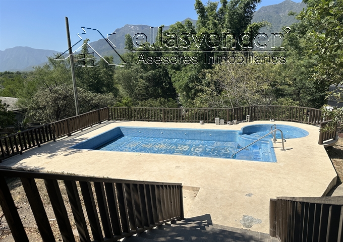 Quinta en Fracc. campestre con acceso controlado, cuenta con una cabaña equipada, amueblada y decorada, cochera techada para 4 carros, sala con chimenea, área de bar, cocina muy amplia con comedor, un baño completo, terraza, alberca de 8X4 con Jacuzzi, bodega, 1/2 baño, tinaco, arboles frutales: Planta Alta: estancia, 2 recámaras y un baño completo. Cuenta con un Pozo de Agua. *** Más Información al (81) 1522-7457, WhatsApp 81-8178-3375 *** ACCESORIOS: iluminación, 4 minislits, 5 abanicos de techo,7 cámaras de seguridad, pozo de agua